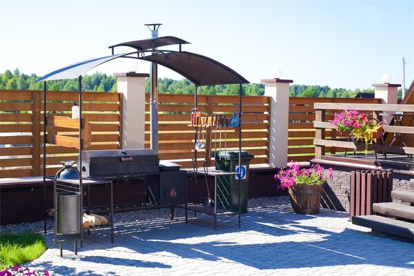 Беседка оснащена всем необходимым для кулинарных шедевров: угольной печью, варочной поверхностью и просторной кухонной утварью. Гибкие окна позволяют создать идеальный климат внутри — укрыться от непогоды или насладиться свежим воздухом в жару. Гостям предоставляются дрова, уголь, посуда и даже теплые пледы для уюта.