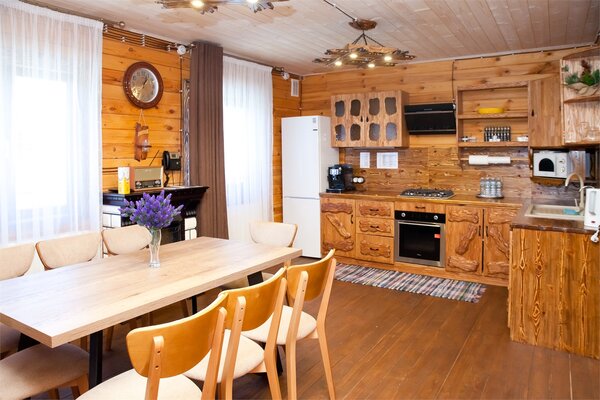 В распоряжении гостей просторная деревянная беседка, современный угольный гриль и печь для приготовления блюд в казане или на сковороде. Каждый дом оборудован всем необходимым для приготовления пищи и сервировки, дополнительно предоставляется уголь, жидкость для розжига, шампуры, решетки и теплые пледы.