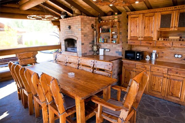 В вашем распоряжении угольная печь, варочная поверхность, а также вся необходимая посуда и аксессуары для готовки, дрова, уголь, шампуры и даже теплые пледы для вашего комфорта.