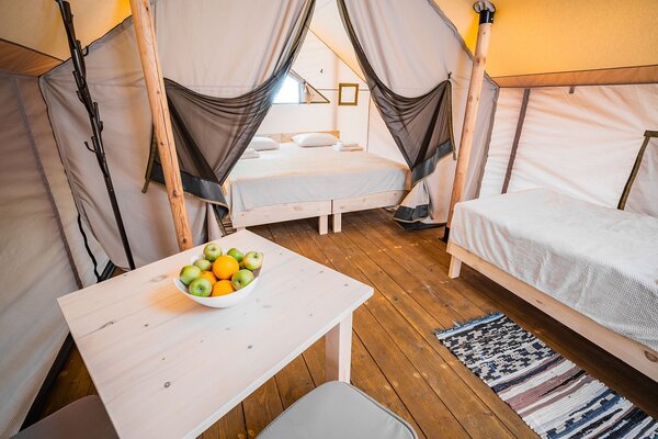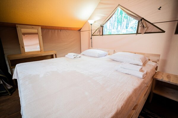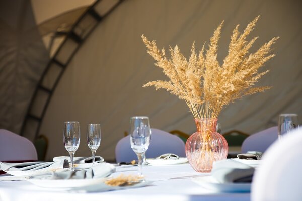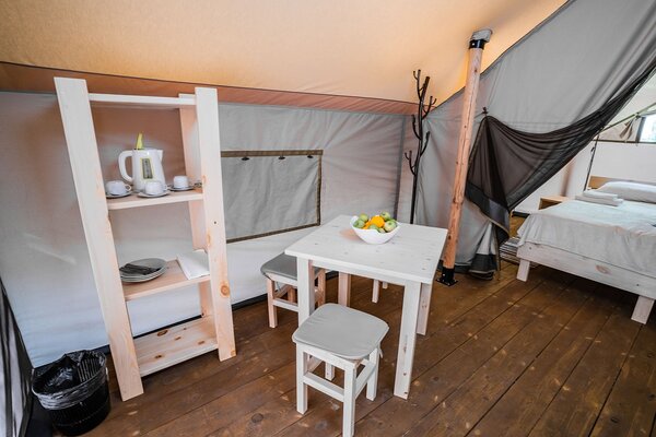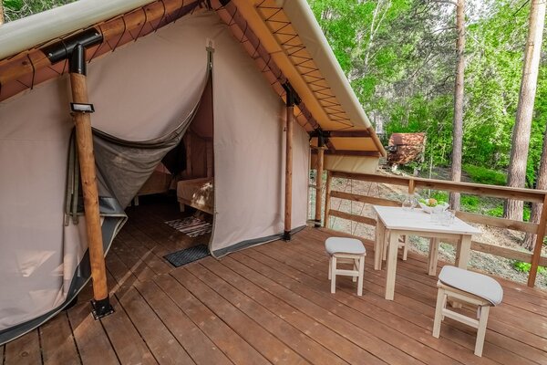 Место, где можно провести мероприятие в любое время года, — просторный шатер с панорамными окнами, который вмещает до 45 человек. В шатре есть все необходимое для проведения мероприятия: от туалета до кухни. Здесь можно организовать свадьбу, корпоративное мероприятие, день рождения, банкет или семинар, наслаждаясь комфортом и природной атмосферой.