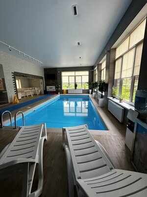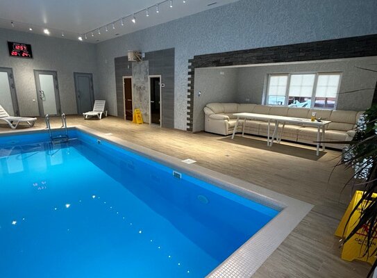 Для удобства гостей предусмотрена раздевалка с индивидуальными ящиками для вещей, а в основном зале расположен просторный бассейн с эффектом волн, зона отдыха с уютной мягкой мебелью, большой стол для дружеских встреч и телевизор с караоке. Также доступны финская сауна, турецкий хамам и душевые — все для того, чтобы ваш отдых в аквакомплексе оставил только положительные эмоции и зарядил отличным настроением.