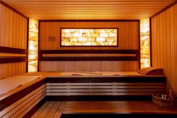 В Эко-отеле вы сможете насладиться теплом финской сауны, расположенной в аквакомплексе. После расслабляющего сеанса парения вы можете отдохнуть в уютной зоне отдыха, где есть большой стол и мягкая мебель. Здесь вы сможете весело провести время с друзьями за просмотром телевизора или пением караоке.