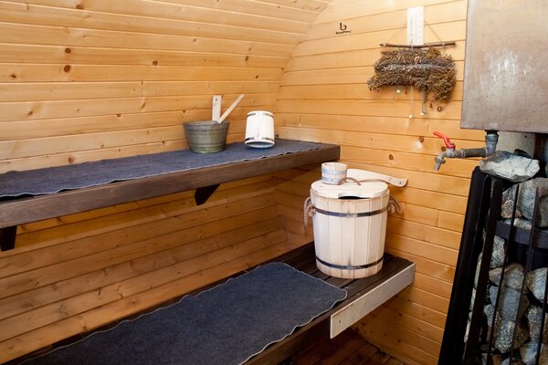 Баня оборудована всем необходимым: жаркая парная, комфортная помывочная и пространство для отдыха. Для максимального удовольствия предлагаются травяные запарки, аромамасла и березовые или дубовые веники.