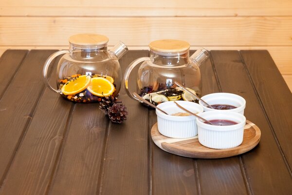 В эко-отеле предлагается изысканная чайная церемония после бани. Гости могут насладиться ароматным травяным или фруктовым чаем, приготовленным на кристально чистой артезианской воде.