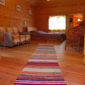 Русская баня на березовых дровах с парной, купелью и комнатой отдыха одновременно могут попариться до 10 - 12 человек.