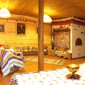 Прекрасное место, очень удобно отдыхать большой компанией, можно брать детей. Атмосфера нашей страны с традиционными матрехами и самоварами.