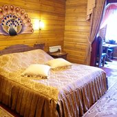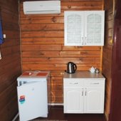 Отель «Покровский Медведь» – это комфортабельная гостиница с уютными номерами в деревянных коттеджах, выполненных в современном стиле. В номерах – удобные и мягкие кровати, мебель из натурального дерева, мини-кухня, прихожая, кондиционер, холодильник, чайник, плазма, фен, санузел.