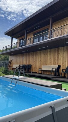 Добро пожаловать в уютный банный комплекс — идеальное место для отдыха и восстановления сил! Это уникальная возможность насладиться атмосферой и расслабиться в кругу друзей или семьи. Возможность размещения до 10 человек . Комплекс включает в себя просторную парную, холодную купель, душевую, а также зону для отдыха. На территории комплекса имеется оборудованная кухня с посудой, зона для приготовления шашлыков и гриля. Комплекс окружен зелеными насаждениями с видом на реку, что создает атмосферу уединения и покоя.