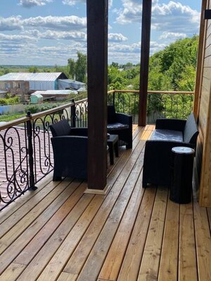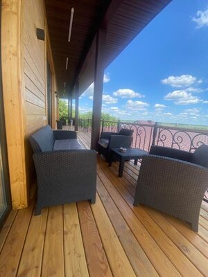 Добро пожаловать на уютную веранду, расположенную на третьем этаже Гостевого дома. Эта просторная веранда идеально подходит для тех, кто ищет комфортное место для отдыха на свежем воздухе. Веранда площадью 50 квадратных метров, с возможностью разместить до 10 человек. Здесь достаточно места для семейных встреч, дружеских посиделок или романтических вечеров. Веранда оформлена в стильном и современном дизайне с использованием натуральных материалов. Удобные кресла и столы создают атмосферу уюта и расслабления. С веранды открывается великолепный вид на реку и окружающую природу. Оборудованная кухня с комплектом посуды, гриль для барбекю, освещение и возможность подключения к Wi-Fi. Аренда возможна на срок от 3-х часов.