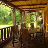 цена не из самых низких, но зато качество радует. Обслуживание на высоком уровне, персонал грамотный и вежливый. Номера хорошие, с сантехникой всё в порядке. На территории много развлечений: катание на лошадях, разные спортивные игры, настольные игры, баня. В общем, и семьям, и компаниям будет чем заняться. На кухне в гостевом доме можно самим готовить, для этого всё имеется. А на улице – мангал и прочие принадлежности для шашлыка и других блюд на костре. Очень понравилось это место, но приедем ли еще – не знаем, так как всё-таки дороговато.