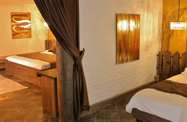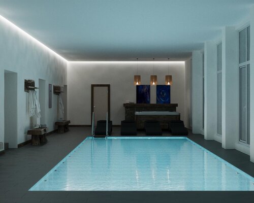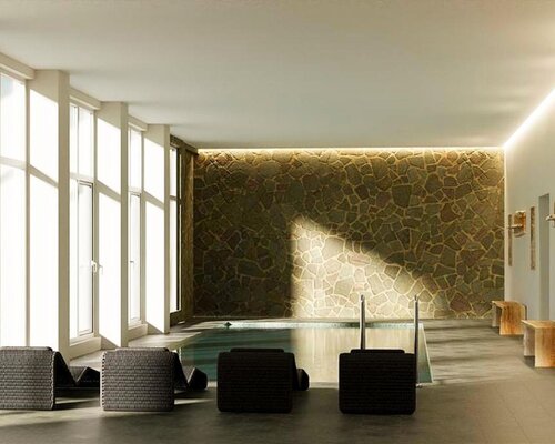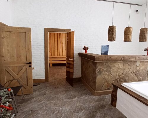 Для ценителей релаксации предусмотрена роскошная спа-зона, включающая сауну, бассейн и джакузи, оформленные мрамором, экзотическими породами дерева и натуральным камнем. Для особенного отдыха предлагается альпийский чан с целебными травами, расположенный на живописном берегу реки.