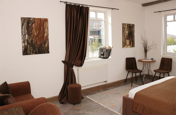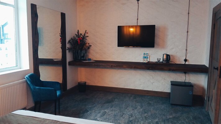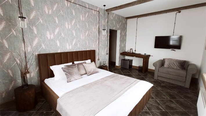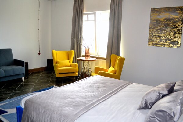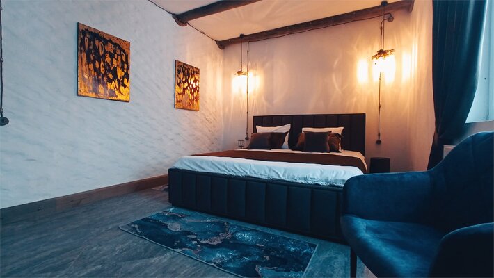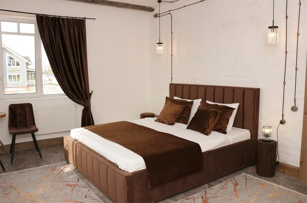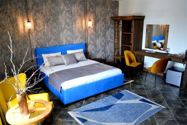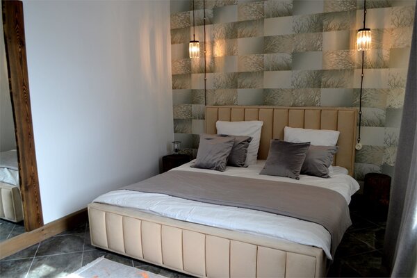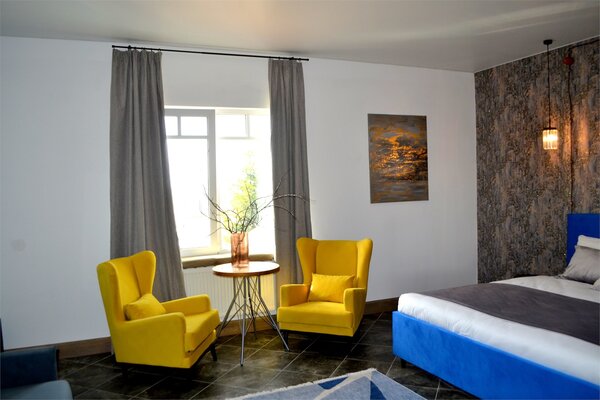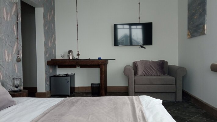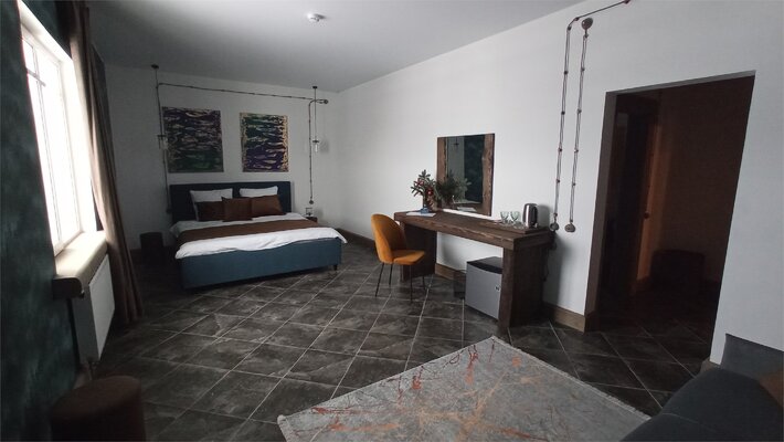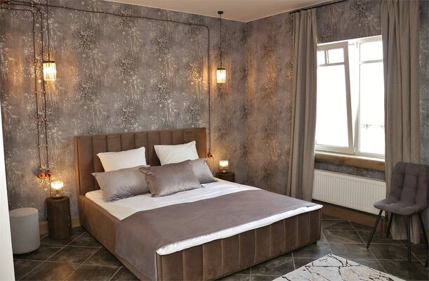 В каждом номере гостей ожидает мебель, созданная по индивидуальным заказам, оригинальные произведения искусства, изысканная флористика и современное техническое оснащение.