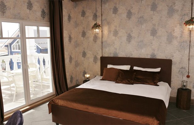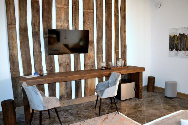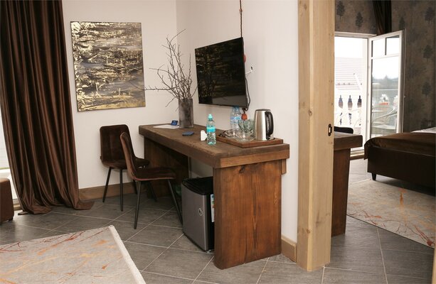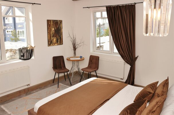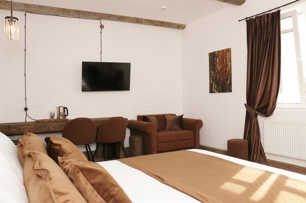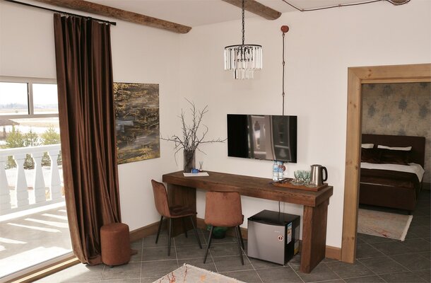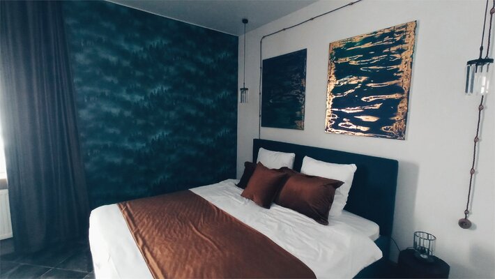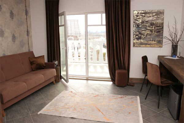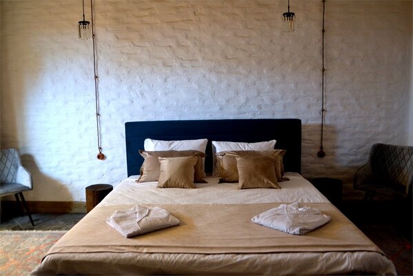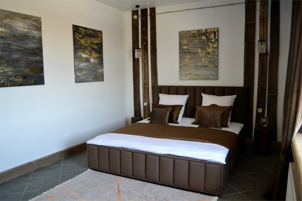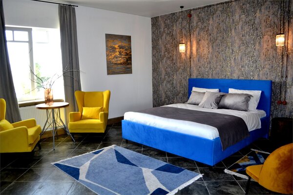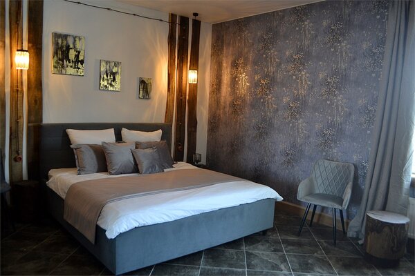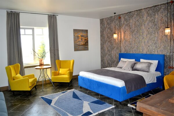 В каждом номере гостей ожидает мебель, созданная по индивидуальным заказам, оригинальные произведения искусства, изысканная флористика и современное техническое оснащение.