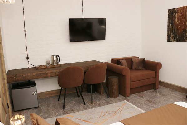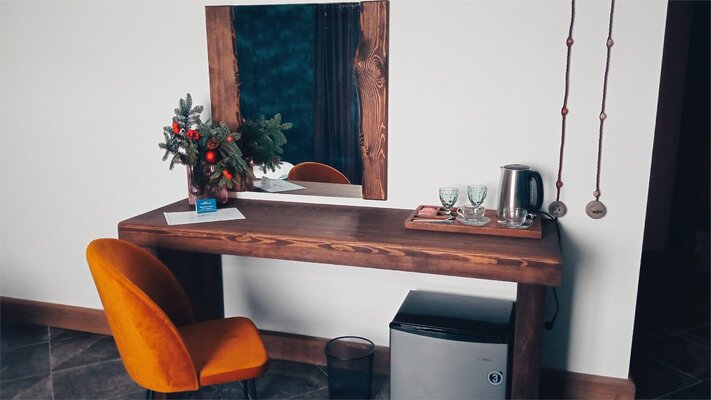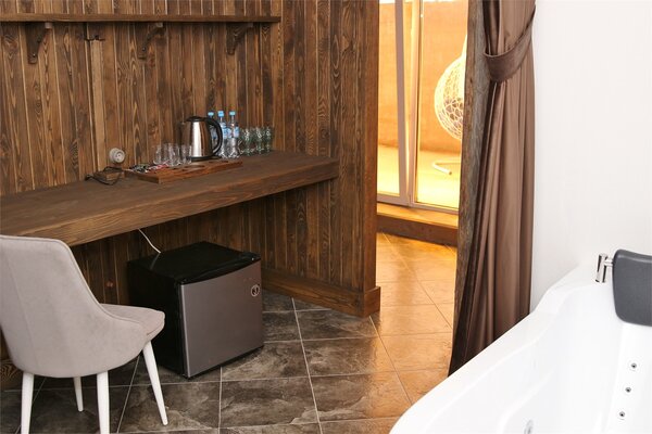 Мини-бар со снеками и напитками расположен в каждом номере бутик - отеля. А на территории бассейна для Вас работает фрэш бар.