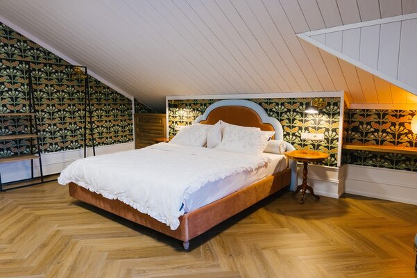 В самом сердце древнего Суздаля, укрывшись у подножия земляного вала, ждет своих гостей «Терем Гамаюнъ». Здесь, вдали от городской суеты, царит атмосфера умиротворения и близости к истории. Из окон открывается завораживающий вид на Суздальский Кремль, а колокольный звон наполняет воздух духом старины. В интерьере, согретом теплом русской печи и продуманном до мелочей, ощущается дыхание прошлого.