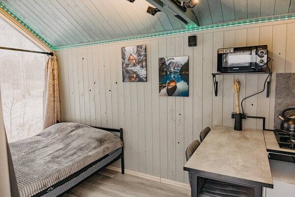 Вечером вас окутает магическая подсветка домиков, освещая тропинки. Насладитесь тишиной и безграничным звездным небом, не замутненным городским смогом.