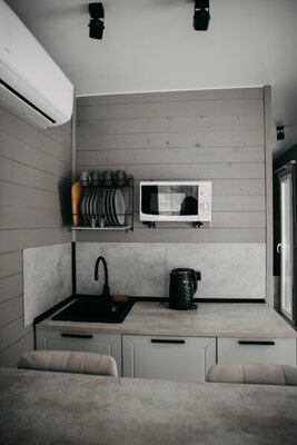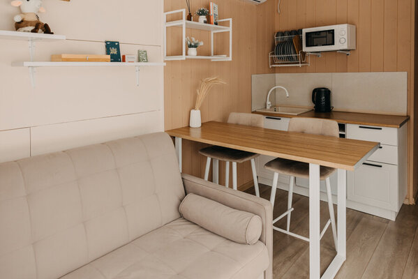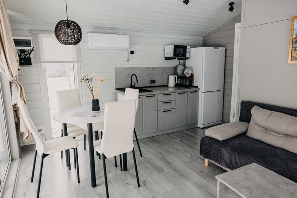 Внутри домиков все продумано для комфорта: функциональная кухня, посуда, кондиционер, удобные кровати, полотенца и постельное белье. Вы почувствуете себя как в отеле, окруженном живописной природой.