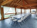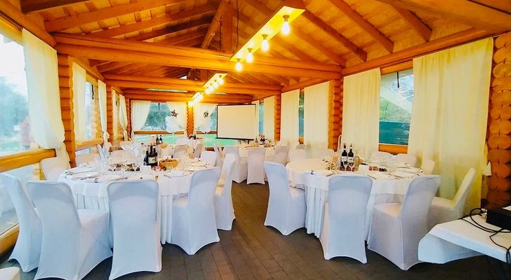 Площадь 50 кв.м., вместимость 20 человек, банкетная посадка. Всесезонная, закрытая. Сплит система, холодное время года — отопление. собственный санузел, холодильник, мангальная зона, зона кухни с раковиной, микроволновка. Банкет «под ключ», сервировка, официант, аниматоры, ведущие — бронь осуществляется заранее, не менее, чем за 5 дней! Подходит для свадеб, корпоративов, конференций, дней.