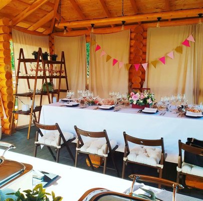 - 10 000 ₽/час по времени аренды шатра. Площадка терраса и газон. Обязательно к оплате, в случае фуршета на улице и выездной регистрации при расстановке мебели и оборудования. + доп.мебель д/регистрации. Мебель из шатра НЕ ВЫНОСИТСЯ!