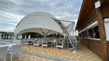 Завтраки и ужины для гостей парк-отеля «Авиабаза» проходят по системе «шведской линии» в ресторане «Аэропорт», расположенного под крылом дома-самолета ИЛ-18.