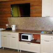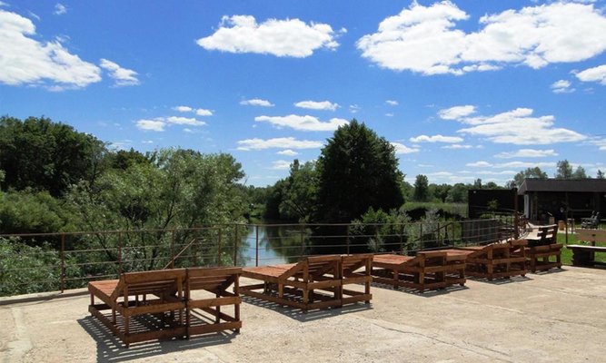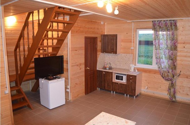 Турбаза находится на берегу реки, тихое и уютное место, симпатичные домики, есть прокат лодок и suboard -досок. Жили в бунгало, очень понравилась обстановка, на первом этаже кухня, туалет, на втором спальные места. По всей территории расставлены лавочки, деревянные лежаки, мангалы для жарки шашлыков. Wi-fi и сотовая связь в доме не ловит, нужно выходить на улицу, но для меня это скорее плюс, чем минус. В доме был современный большой телевизор с цифровыми каналами, так что скучно не было.