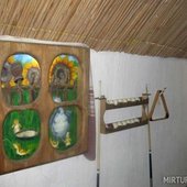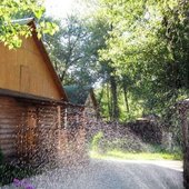 Размещение предлагается в постройках из хвойного дерева, сделанных по старинной технологии без гвоздей. Во всех есть бани, территория вокруг каждого огорожена, везде имеется собственный спуск к воде В большом доме с двумя спальнями кухней и большим залом, возможно размещение 6-8 гостей, в маленьких – 4-6. Дома с удобствами, есть кухня со всем необходимым, набор посуды. Еще два состоят из парной, двух комнат отдыха и гостиной. Санузел расположен на улице. Рассчитаны на 10 человек.