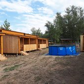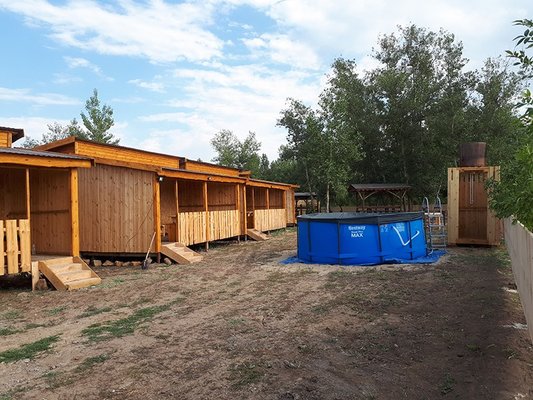 Для размещения гостям предлагается дома, рассчитанные на 2-3 человека, выполненные из натурального дерева. В каждом есть сплит-система, комфортные спальные места, телевизор, душевая комната и санузел.