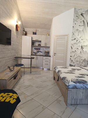 На обширной территории комплекса размещены 3 уютных номера, просторная (70 кв. м) витражная мангальная зона, собственный пляж на первой береговой линии, места для рыбалки и водного отдыха, закрытая территория, доступная только для гостей.