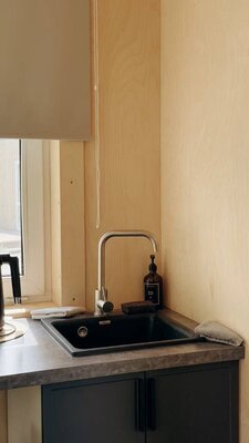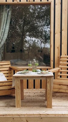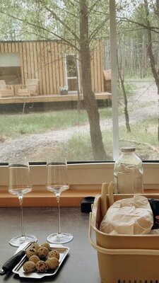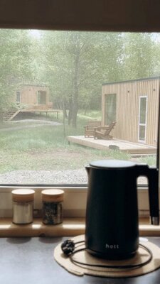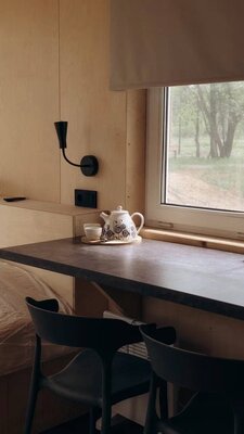 На территории глэмпинга есть пивоварня. Здесь гости могут позавтракать/пообедать/поужинать и выпить пива/лимонад.