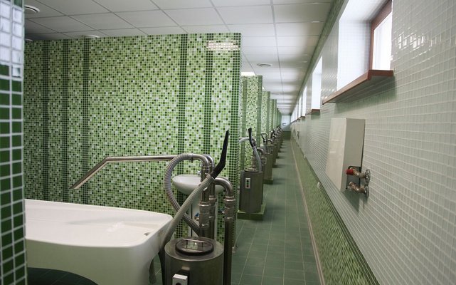 В здании водо-грязелечебницы расположены помещения для лечебных процедур, поликлиника, ресторан, бар, большой зал для отдыха, музыкальный салон.