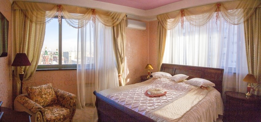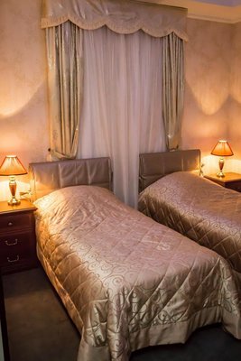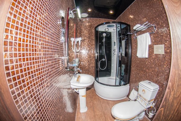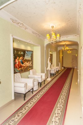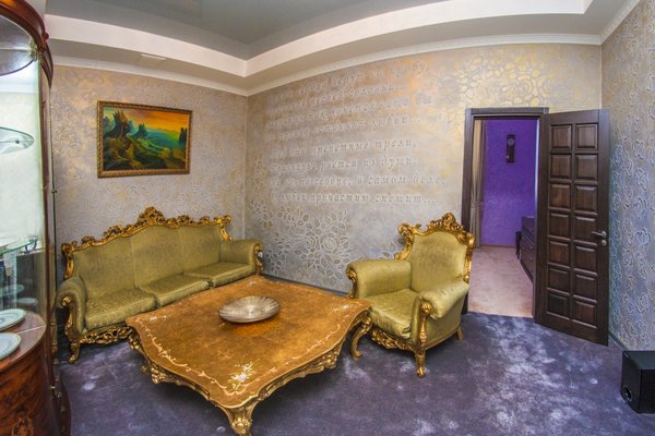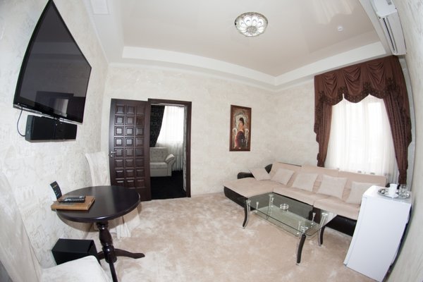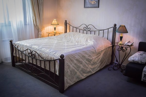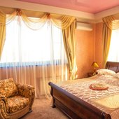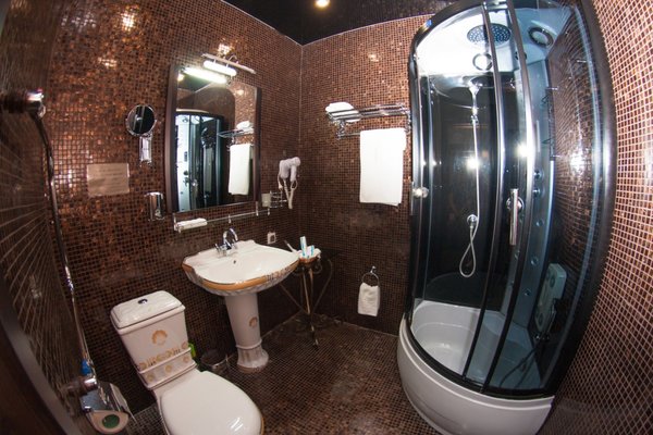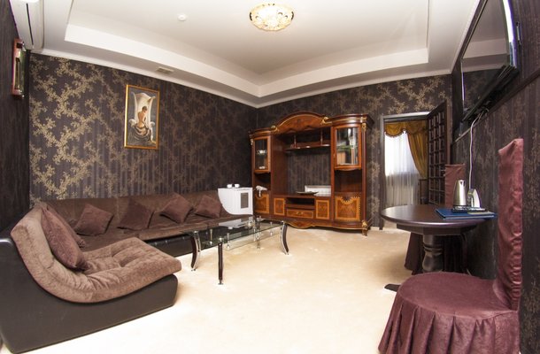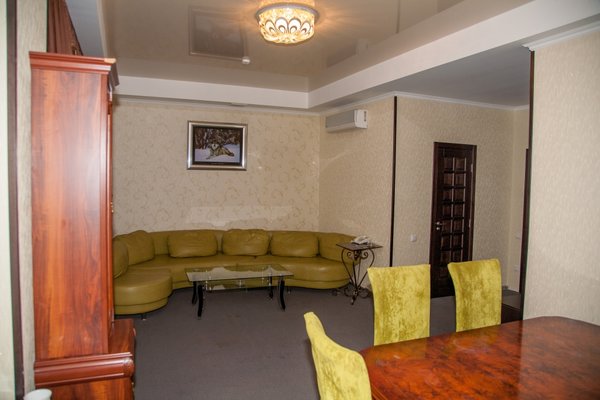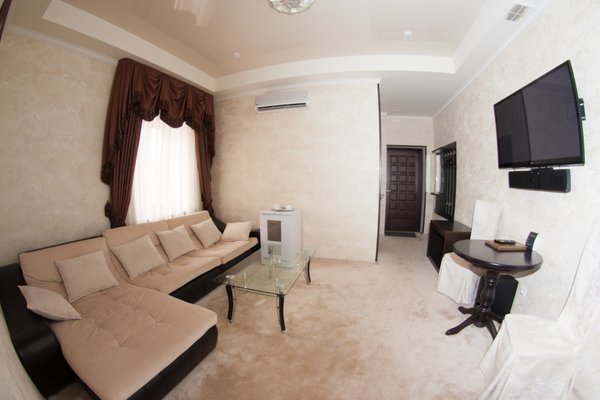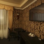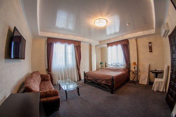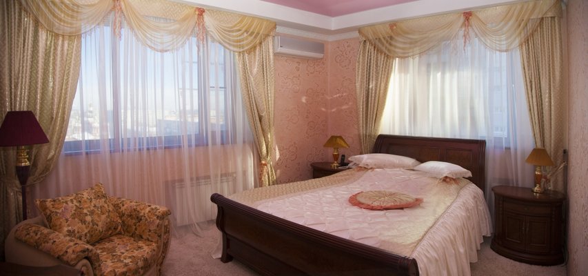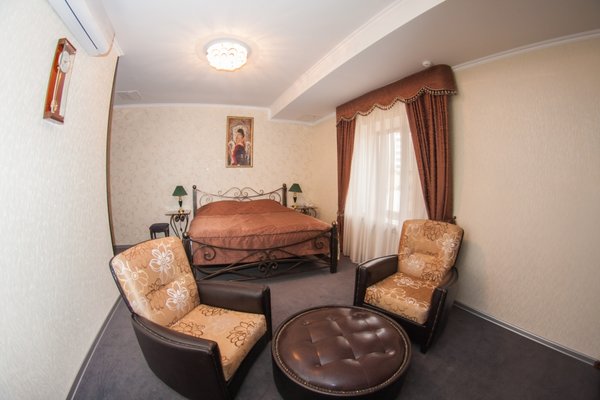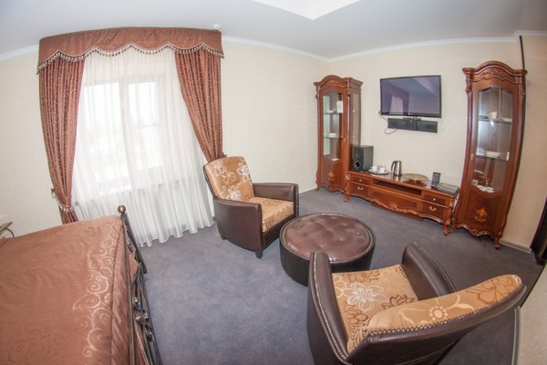 Для проживания выделено 60 номеров различных категорий (от «Эконома» до «Люкса», «VIP»). Все они оформлены в классическом стиле, есть собственный санузел с душевой кабиной или джакузи. Некоторые номера - однокомнатные, другие — двухкомнатные.