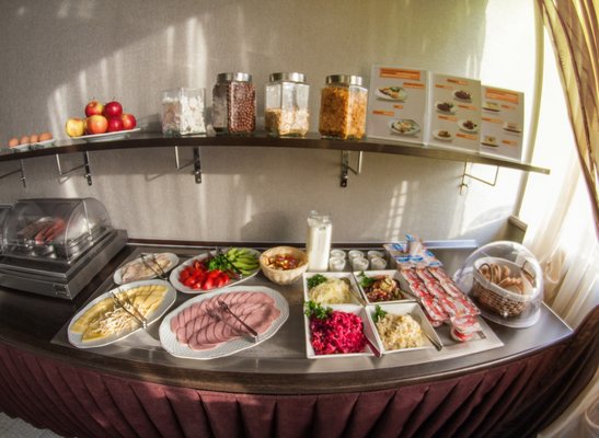 В гостинице есть уютный ресторан, в меню которого представлен широкий ассортимент блюд европейской, кавказской и авторской кухни, а также безалкогольные и алкогольные напитки.