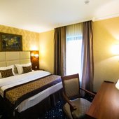 Номера в гостинице разделены на категории, каждая из которых имеет в своем оснащении расширенный список удобств. В ванной комнате подготовлены халаты, тапочки и средства личной гигиены.
