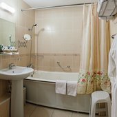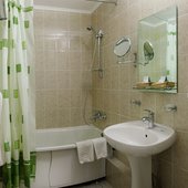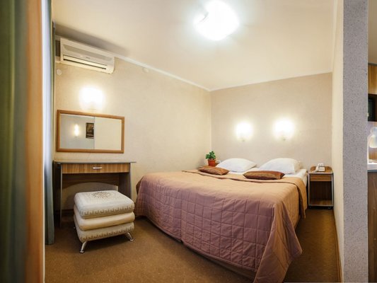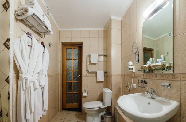 Номера оформлены в классическом стиле и оборудованы кондиционером, телевизором и холодильником. В ванной комнате для удобства гостей имеется фен, халат и средства личной гигиены.