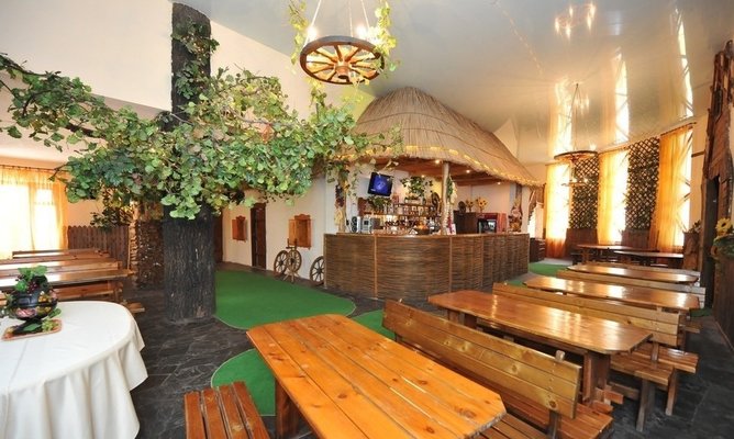 Кафе с залом на 100 посадочных мест. Здесь гости могут отведать широкий ассортимент блюд русской и европейской кухонь, попеть в караоке. Есть летняя площадка с беседками на 36 посадочных мест.