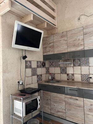 Внутри вас ждет комфорт: современный кондиционер, телевизор, утюг, фен, а также все необходимое для отдыха — постельное белье и полотенца. Кухня оборудована индукционной плитой и всей необходимой посудой.
