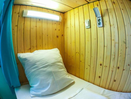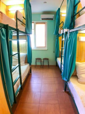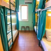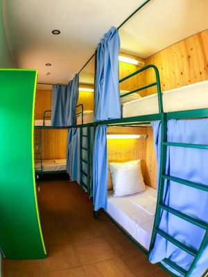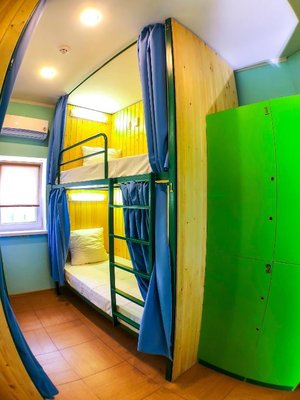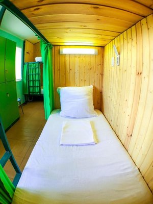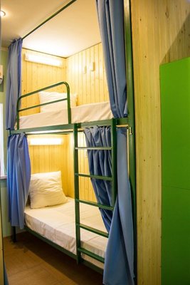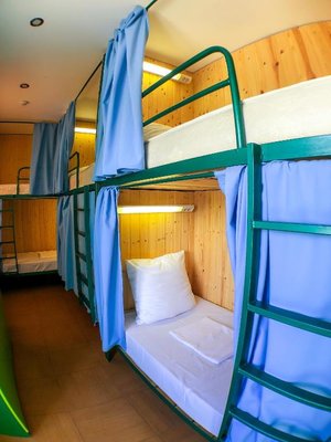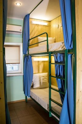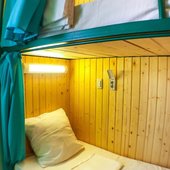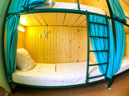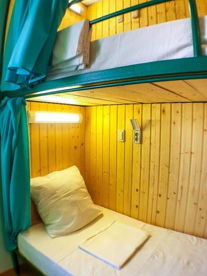 Спальное место на двухъярусной кровати в общем номере для мужчин и женщин
