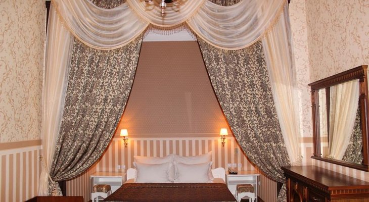 Для размещения постояльцев оборудованы номера различной категории, каждый из которых имеет современные ванные комнаты, высокие потолки, панорамные окна или балконы.