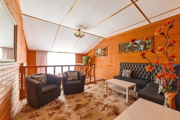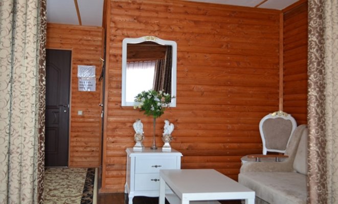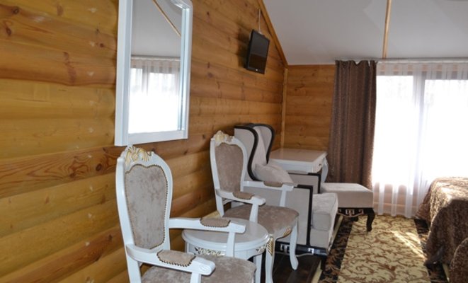 Номера оборудованы всем необходимым для полноценного отдыха гостей: удобной кроватью, телевизором, сплит-системой. В ванной комнате предоставляются – косметические принадлежности, тапочки и халаты. Хорошая планировка комнат, тепло бревенчатых стен, запах настоящего дерева создают ощущение неповторимого загородного уюта, помогают снять напряжение, отстраниться от суеты большого и шумного города. На втором этаже находится ресторан, в котором гости отеля могут отведать блюда русской, европейской и кавказской кухни.