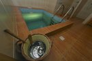 Бассейн с чистейшей, постоянно фильтруемой водой и гидромассажем расположен в русской бане. Рядом есть душевая и просторная комната отдыха.