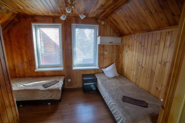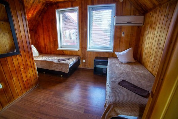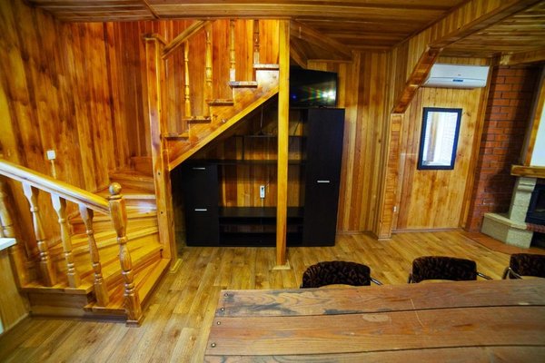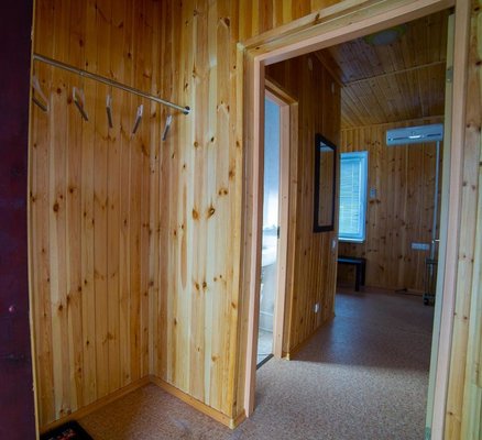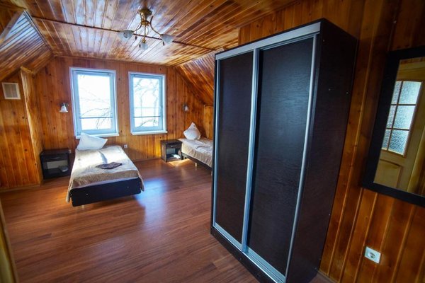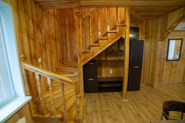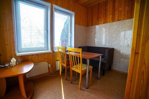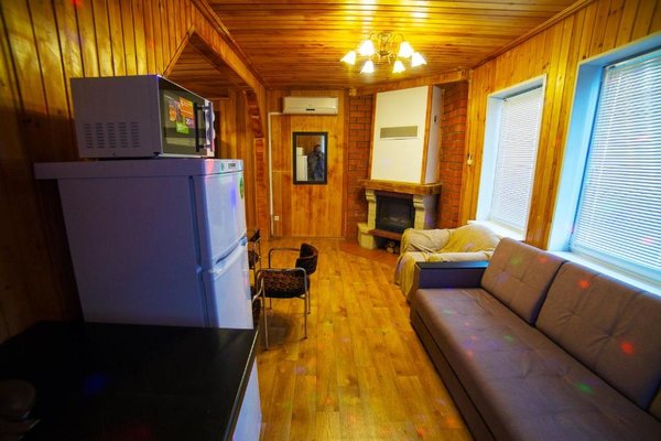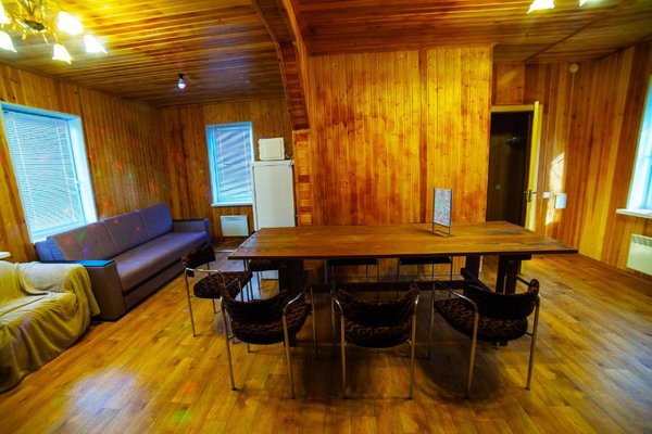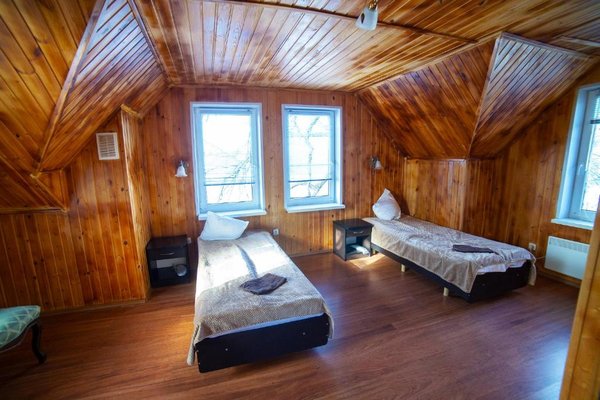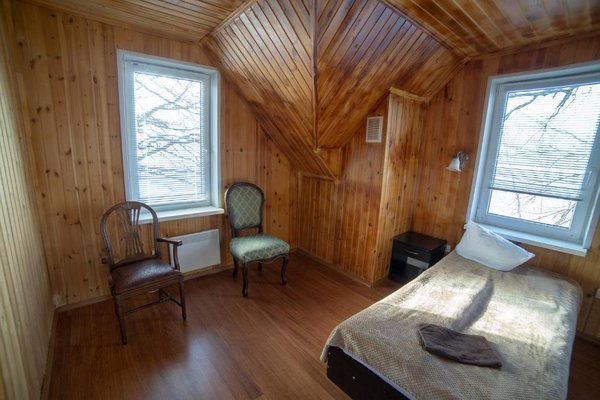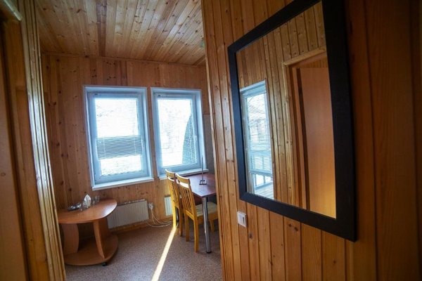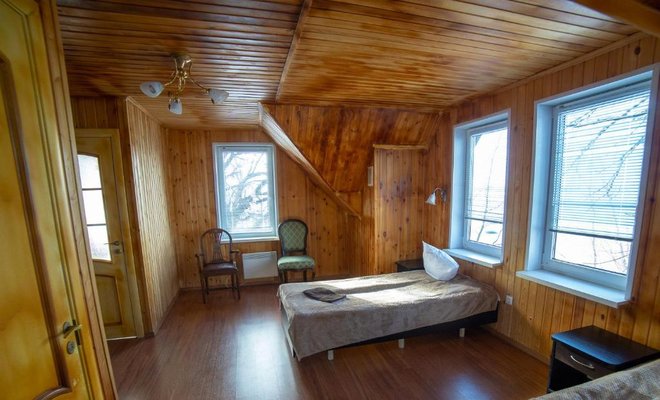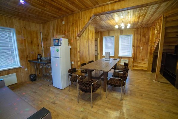 - Двухэтажная баня с купелью. Русская парная на дровах, на 10 человек. Комната для отдыха, душевая, бильярдная на втором этаже. Стоимость — 2000 ₽/час, с бильярдом — 2500 ₽/час, свыше 10–ти человек — 200 ₽/час с человека.