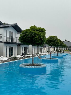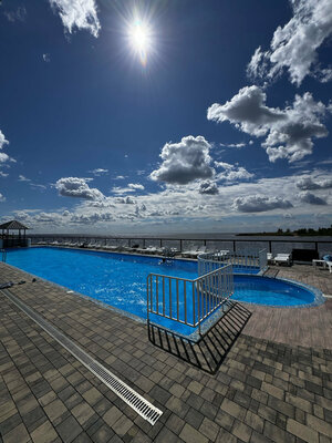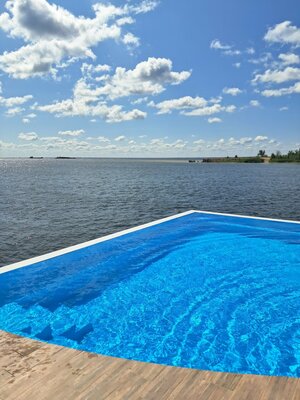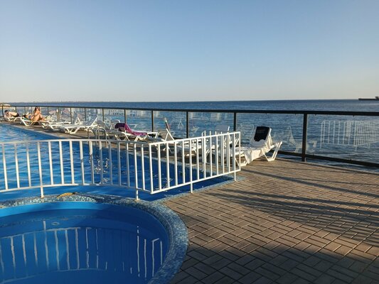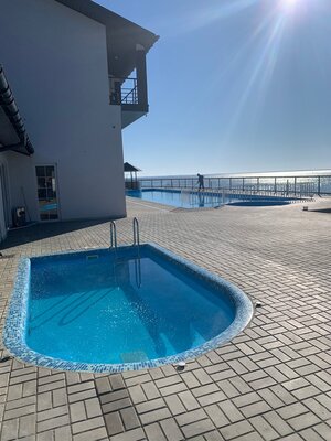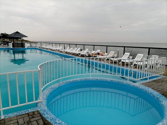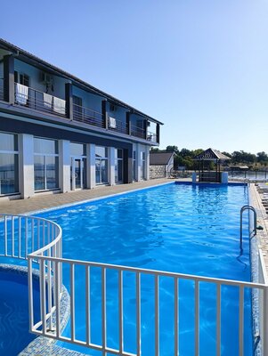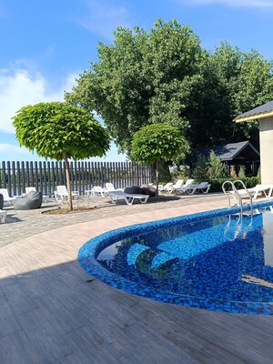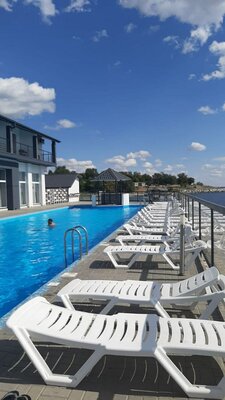 Пляж у отеля «Пристань» — идеальное место для семейного отдыха: чистый песок, удобный вход в воду и прозрачная вода. Для вашего комфорта здесь предусмотрены раздевалки, скамейки и кран для ополаскивания ног.