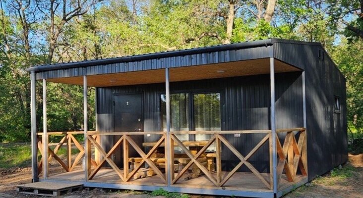 Размещайтесь в современных глэмпинг-домиках для 4 человек, наслаждаясь всеми удобствами.
