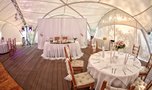 С комфортом разместится до 150 гостей, большой танцпол, есть место для выступления приглашенных артистов. Высокий пятиметровый купол позволяет проводить акробатические представления, представляет широкие возможности для декорирования и драпировки тканью.