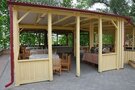 Вместимость от 6 до 200 человек. Все беседки электрифицированы и оборудованы мангалом. Некоторые имеют прозрачные шторы от ветра. Возможно предоставление газового или инфракрасного обогревателя в холодную погоду. Также предлагаем воспользоваться услугами шашлычника и официантов.