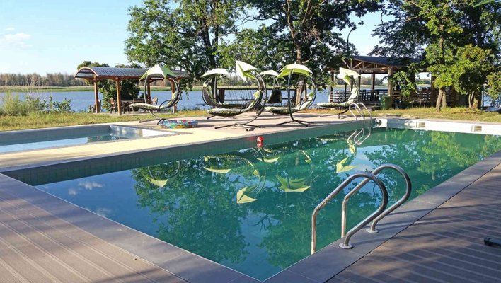 Взрослый бассейн — всесезонный и работает круглогодично. Вода регулярно очищается и подогревается.