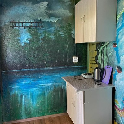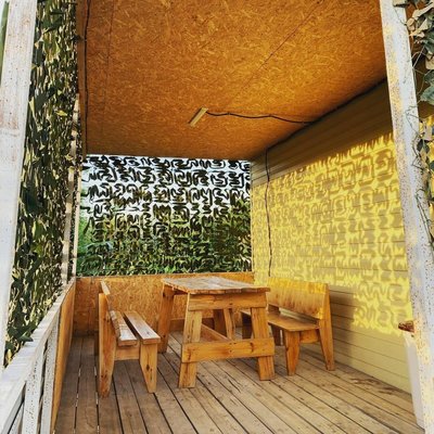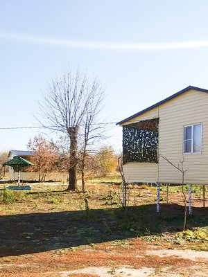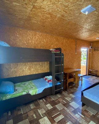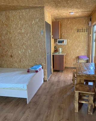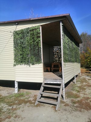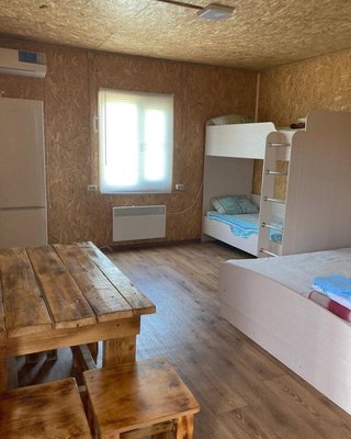 В распоряжении гостей пять просторных четырехместных домиков с удобствами, верандой и мангалом. Есть песчаный пляж с возможностью купания. Любители рыбалки и охоты могут заняться своими увлечениями на территории базы.
