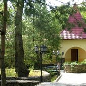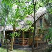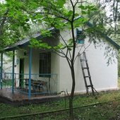 Однако если, устав от сутолоки городской жизни, вы ждете тишины и покоя на природе, это то самое место, которое вам нужно. Чистейший воздух, прозрачная тихая речка, а также отсутствие соседей в непосредственной близости. Если вы приедете сюда в будни, то основными звуками, которые вы услышите, будет пение птиц, которых здесь очень много, и кваканье лягушек – мы отдыхали в мае. Территория базы в основном засажена сосной и кедром, есть также акация, клен и тополь, поэтому окружает аромат соснового леса.