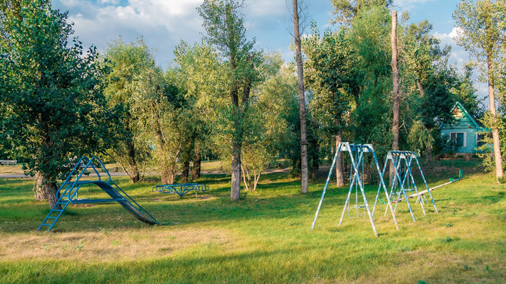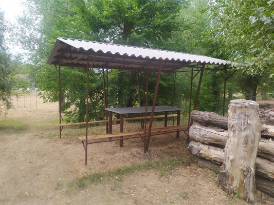 Для проживания гостей предоставляются кирпичные домики с верандами, но без удобств. На территории отдыха есть колодец с питьевой водой, футбольная и волейбольная площадки, а также детский городок.