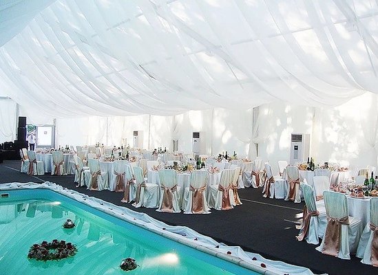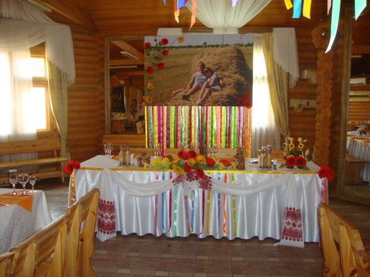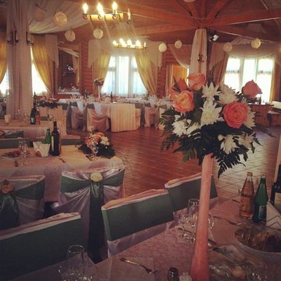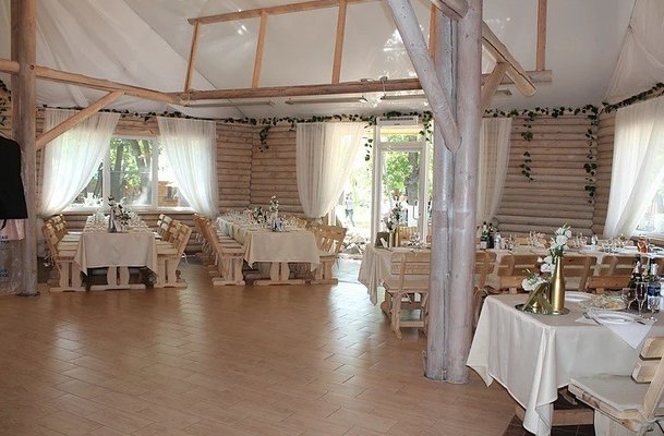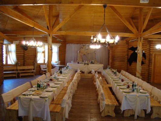 Есть телевизор (1 шт.), проектор, имеет собственную беседку (возможно для выездной регистрации или свободной посадки).